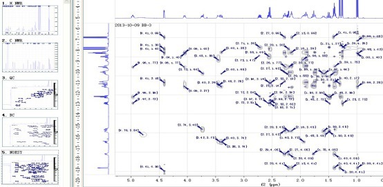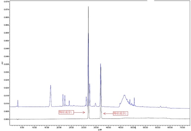 首先對原料進行分析初步判定指紋峰的類型,然后通過判定的結(jié)果制定相關(guān)的純化方案,再制定的方案得到所需目標物, 最后通過 MS、NMR、IR、UV 來確定相關(guān)化合物的結(jié)構(gòu)。