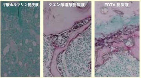 最左圖是選用酸性脫鈣溶液中對組織傷害較少的甲酸福爾馬林