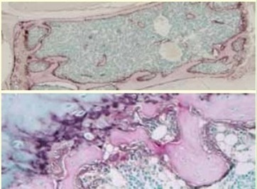 圖5. 脫鈣石蠟包埋切片的TRAP/ALP雙重染色