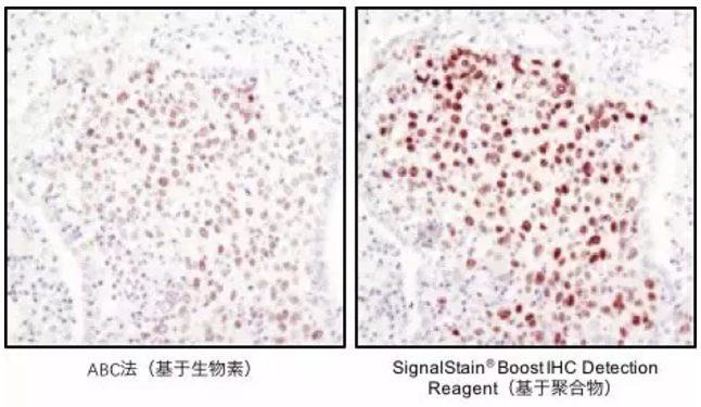 使用多聚 HRP(Poly-HRP)的二抗,即在二抗上連接大量 HRP,以充分放大信號;同時,配合優(yōu)質(zhì)的色原產(chǎn)品,提升靈敏度,增強(qiáng)信號。