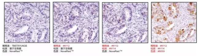 注:使用 PLK1(208 G4)Rabbit mAb #4513 檢測人結(jié)腸腫瘤中 PLK1 的表達(dá),在經(jīng)過輔助試劑的步步優(yōu)化后發(fā)現(xiàn),使用一抗稀釋液#8112 稀釋抗體,聚合物型二抗#8114 進(jìn)行檢測,DAB 顯色試劑#8059 后,可以檢出 PLK1 的陽性表達(dá)。