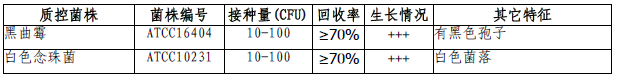 按標簽用法制備培養基,接種以下質控菌株,放置25-28℃需氧培養72-120小時。