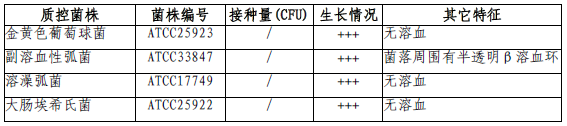 按標簽用法制備培養基,接種以下質控菌株,放置37℃需氧培養18-24小時。