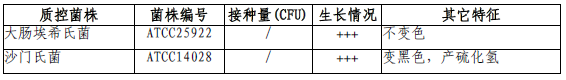 按標簽用法制備培養基,接種以下質控菌株,放置36±1℃需氧培養22-26小時。