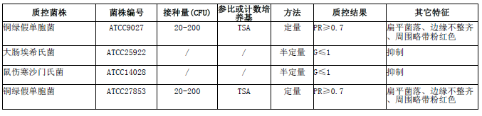 按標簽用法制備培養基,接種以下質控菌株,放置36±1℃需氧培養24±2小時。