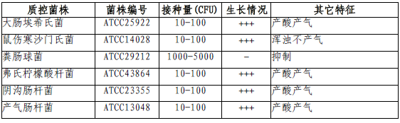 按標簽用法制備培養基,接種以下質控菌株,放置36±1℃需氧培養24±2小時。