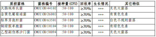 按標簽用法制備培養基,接種以下質控菌株,放置30-35℃需氧培養18-24小時。