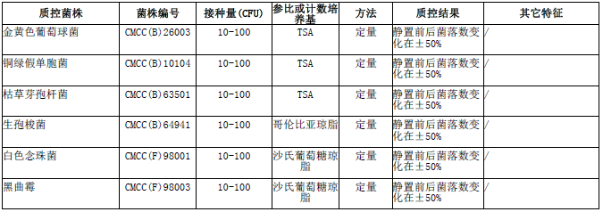 按標簽用法制備培養基,接種以下質控菌株,放置20-25℃需氧培養45分鐘。