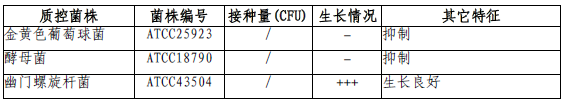 按標簽用法制備培養基,接種以下質控菌株,放置36±1℃微需氧培養72-96小時。